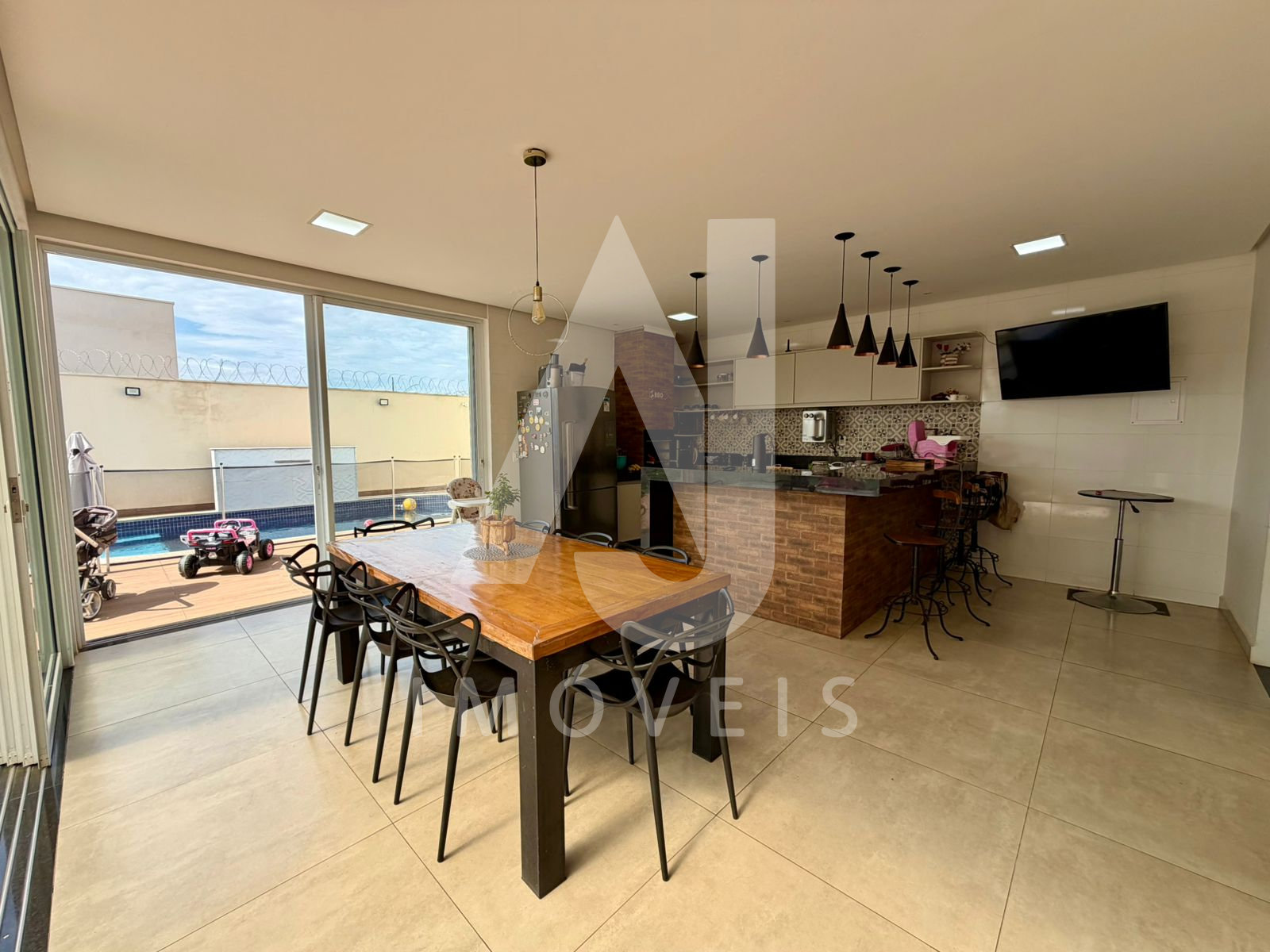 ✅ Área de lazer completa com armários planejados e churrasqueira